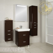 Комплект мебели для ванной Америна 60 Н черная - компактный набор с тумбой шириной 60 см, укомплектованной удобной прямоугольной керамической раковиной и шкафом с зеркалом на фасаде. Тумба предусматривает установку на ножки и имеет 2 внешних ящика, а за верхним скрывается еще один – скрытый встроенный ящик. Внешние ящики установлены на направляющие нижнего крепежа, обеспечивающие жесткое и надежное крепление и плавный ход. В направляющие встроены доводчики. Дополнительно организовано нижнее подключение труб водоснабжения и канализации.